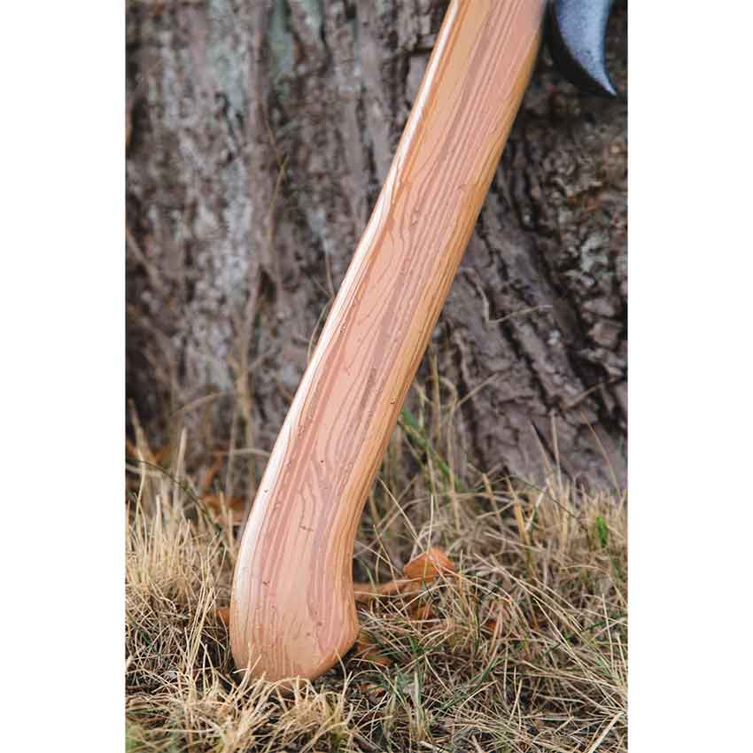 A short axe is perfect for cleaving and slicing even at short range. The Short Elf LARP Axe has a highly versatile and easy to maneuver size with just enough elegance in its design to set it apart as the weapon of an elven warrior. Made of shred resistant, strong yet soft closed cell foam, this fantasy LARP axe has a realistic look but is safe for live action roleplay combat. The steel tone axe blade has a long beard that ends in a slight curl, creating a wide cutting edge. This foam blade has a harder foam core reinforcing its structure without sacrificing safety. Its haft has been hand painted and sculpted to look like real light wood grain. Inside, a fiberglass core with a Kevlar tip gives flexible stability to the shape. Protective latex coats the entire foam LARP axe. This medieval fantasy LARP weapon is both unique enough to serve as the weapon of an elf warrior and versatile enough to work for just about any setting.
