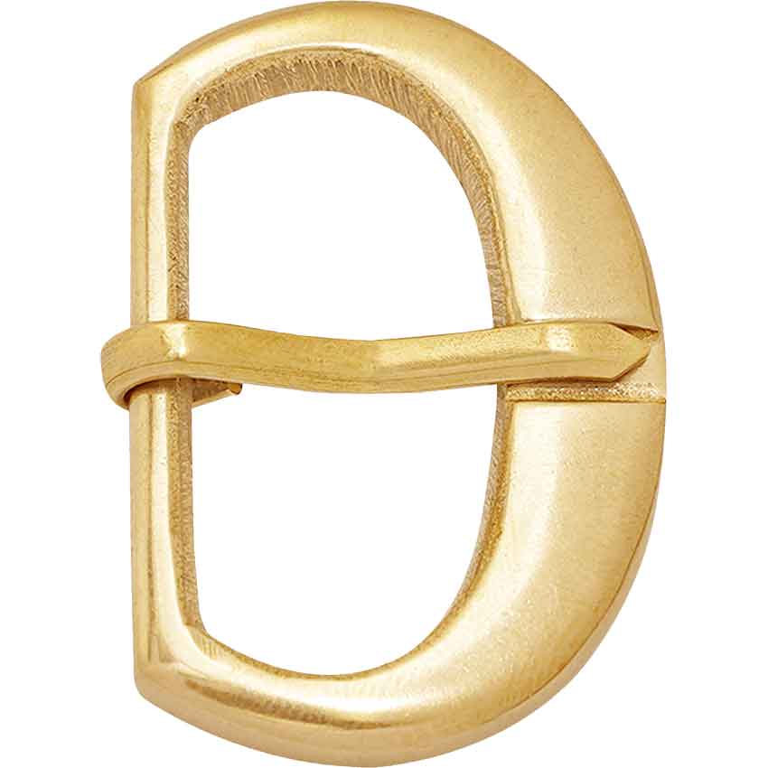 When you have a strap on your medieval armour or Civil War costume, you may need a buckle to match the ensemble. Use this Simple Brass Belt Buckle. This brass belt buckle has a streamlined appearance, making it very versatile. It is in a D-shape. In the middle of the D-shape, there is an indent for the pin to rest in. The other side of the D is the bar that connects to the pin. This brass fastener is an ideal accent for a cosplay, LARP, or historical reenactment outfit.