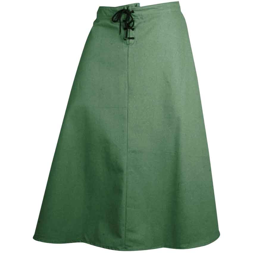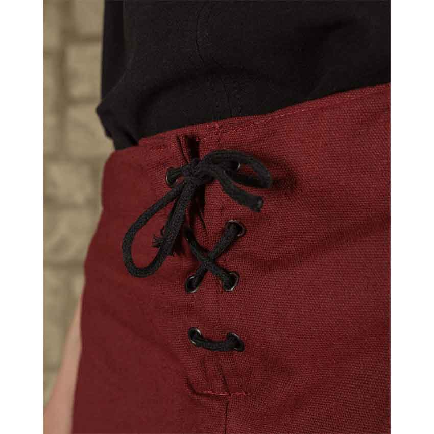 Great for wearing with all sorts of historic blouses and as part of LARP outfits, the Sina Canvas Skirt is made of cotton and features a timeless lace-up closure that can be worn at the front or back, providing extra versatility. This long skirt has a reinforced waistband intended to be worn at the hip. A great basic for many medieval looks, this long skirt has a slight flare, widening just past the hip for a classic, easy to wear style. Available in a variety of colors, this skirt is sure to fit in with a multitude of historic fashions.