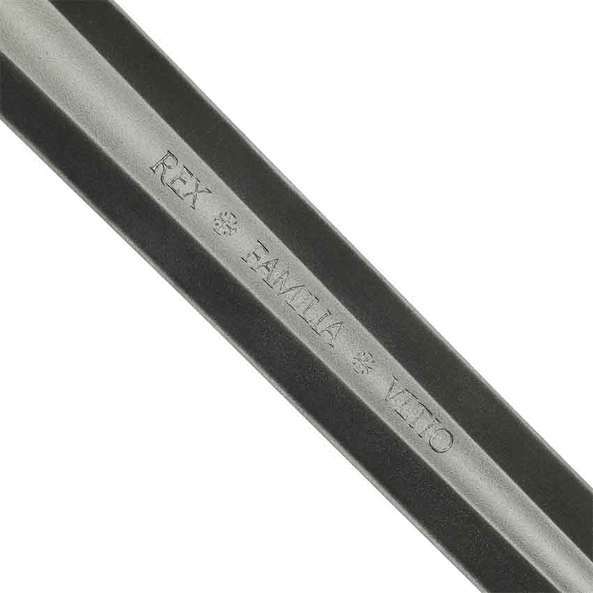 There are dark forces that wish to destroy your kingdom. You refuse to submit to their whims and will defeat them with the Sir Radzigs LARP Sword. Made from latex-free foam and a fiberglass core, this LARP sword has a durable construction. It features a licensed design from the Kingdom Come: Deliverance video game. It has a double-edged blade with a fuller. The fuller runs down half of the blade. In the fuller, the words REX FAMILIA VITIO adorn the blade.