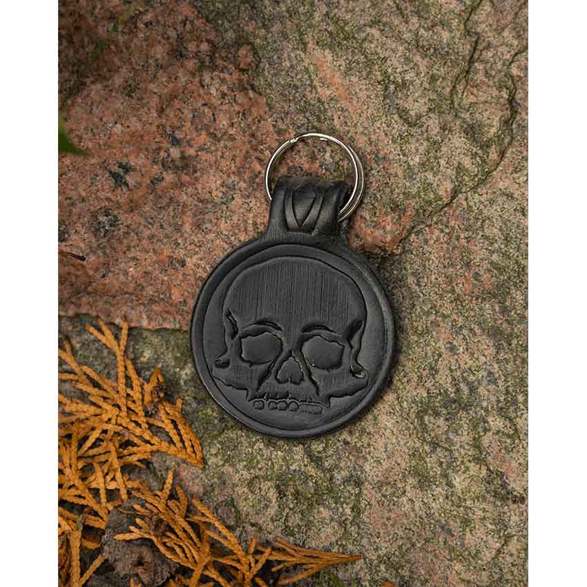 If you like some gothic style with your accessories, then why not add a touch of the macabre to your life with the Skull Leather Key Chain? Made from premium leather, this circular key ring comes in three colors. It is double sided. It depicts an embossed skull in the center. The skull ends at the upper jaw and faces the viewer. At the top, the key chain forms a small loop. A metal ring runs through the loop. You can add your keys or other key chain items to the ring. This key ring makes a great personal accessory. You can also give it as a gift.