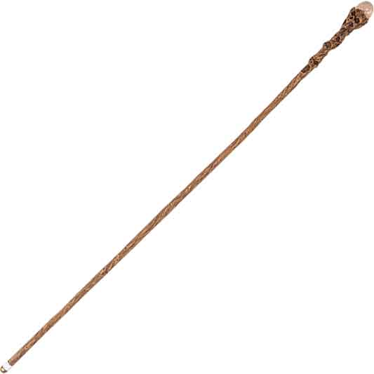 Constructed in three pieces, this cold-cast resin staff is the ideal addition to your next wizard costume or necromancer cosplay. Starting from the top, a red orb channels your magical energies while it’s framed by skulls in the wood. The classic wood finish complements the skull designs perfectly. The skulls are also stacked on top of one another, forming the head and throat of the staff.