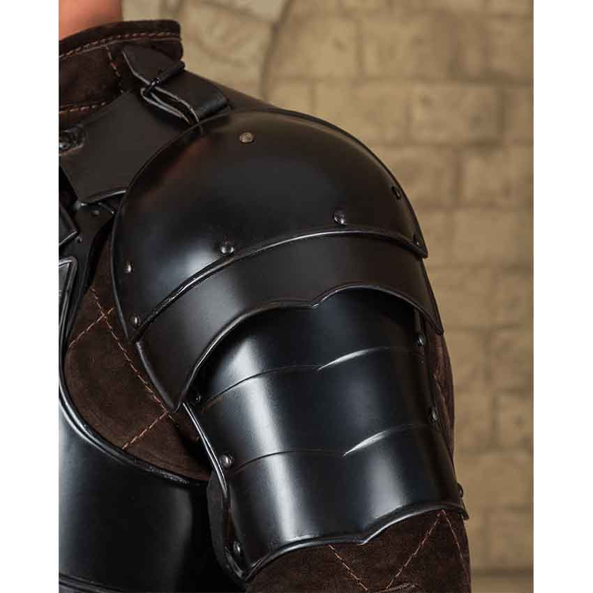 Looking for the matching pieces to this armour? Create the complete look with our Blackened Markward Medieval Armour Outfit (OUTFIT-M6), which includes the Small Blackened Markward Spaulders along with the other pieces of this armour set.
