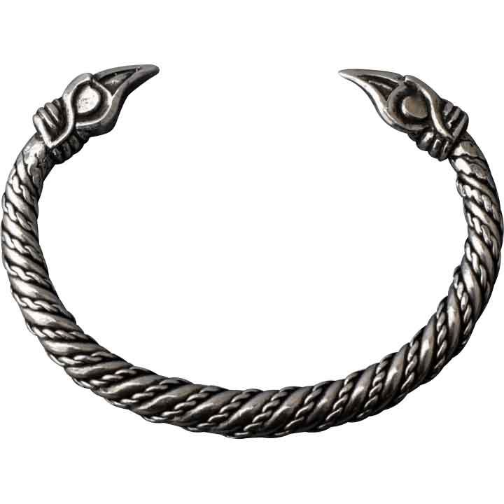 At each end of the open Norse bracelet, there is a stylized ravens head. The Nordic bracelet comes with care instructions. You can wear this Viking raven bracelet with a variety of Viking looks. It also makes a great addition to a Norse jewelry collection.