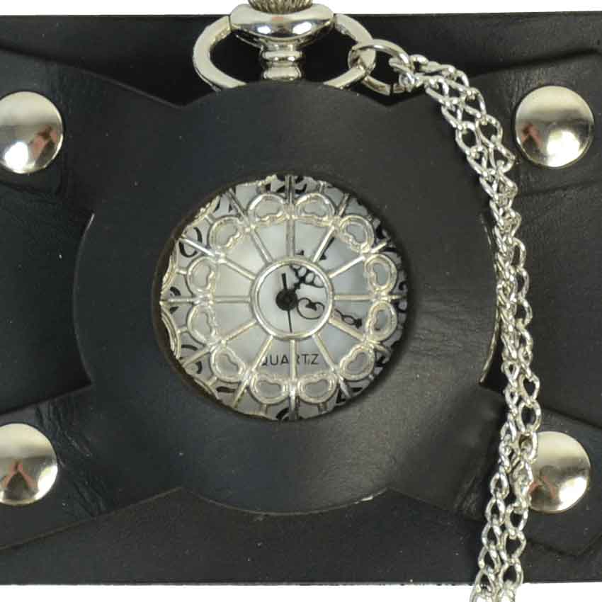 Like a car or a Swiss army knife, a utility belt should have plenty of options. And with this Pocket Watch Slide option added to your belt, you will always know the time, thanks to a stylish accent held securely at your hip for use! This handsome accent is crafted utilizing top quality leather and is offered in either black or brown coloration. It comes complete with a fully functional pocket watch as well. Brown comes matched with antique brass watches, while black holders come with silver pocket watches. Please note that the style of watch can vary from what is shown above, however they will remain the same in color and size. The Pocket Watch Slide makes it easy to carry a pocket watch, allowing you to sport one with any outfit you chose, whether it is casual, steampunk, or anything else!