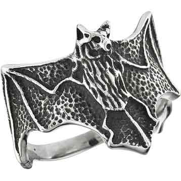 Whether you are a vampire or just enjoy some batty style, you are sure to appreciate the gothic style of the Steel Flying Bat Ring. Made from stainless steel, this gothic ring comes in seven sizes. In front, the ring takes the form of a bat. The bat has its wings spread out in flight. An antiqued, textured finish adds shading and detailing to the bat. Meanwhile, the ring has a straight, narrow band along the back. The inside of the ring has a polished finish. The bat ring makes a great personal accessory and addition to a gothic jewelry collection.