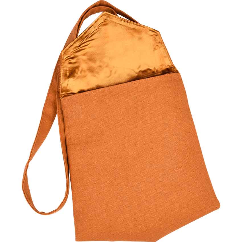 The Sturdy Cotton Medieval Shoulder Bag is perfect for keeping all manner of gear close at hand while on your next adventure. With durable stitching and hardy construction, this medieval bag is prepared to carry heavier essentials. The flat, pentagonal bag sits easily against your side, its top opening covered by the envelope flap. Inside, this medieval knapsack is lined with taffeta. Choose from a variety of colors to suit your style. The taffeta lining color will vary from bag to bag. Just as sturdy as the rest of the bag, the wide strap makes it easy to toss this cotton bag on crossbody or over the shoulder, and be on your way, whether attending a Renaissance fair, reenactment event, LARP, or other special occasion.