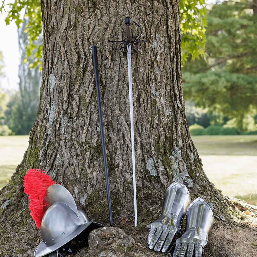Whether you’re gearing up for a reenactment, refining your fencing skills, or displaying a beautiful piece of history, the Swept Hilt Rapier with Black Handle is a great choice.