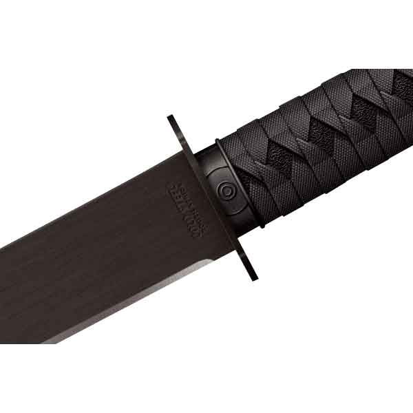 With its deeply curved blade, the Tactical Katana Machete offers a more sword-like cutting experience. The broad, full tang blade, solid steel tsuba, and injection molded high-impact polymer handle provide durability and strength. The blade displays a matte black, baked-on, anti-rust finish. This machete-katana hybrid features the look of a traditional cord-wrapped handle, fushi, and kashira, crafted with modern materials that will not shrink, tarnish, or degrade. This tactical katana requires little maintenance to retain peak performance. The sharpened machete sword comes with a Cor-Ex back sheath for your convenience in storing and carrying. When you want impressive functionality, you can find it in the Tactical Katana Machete.
