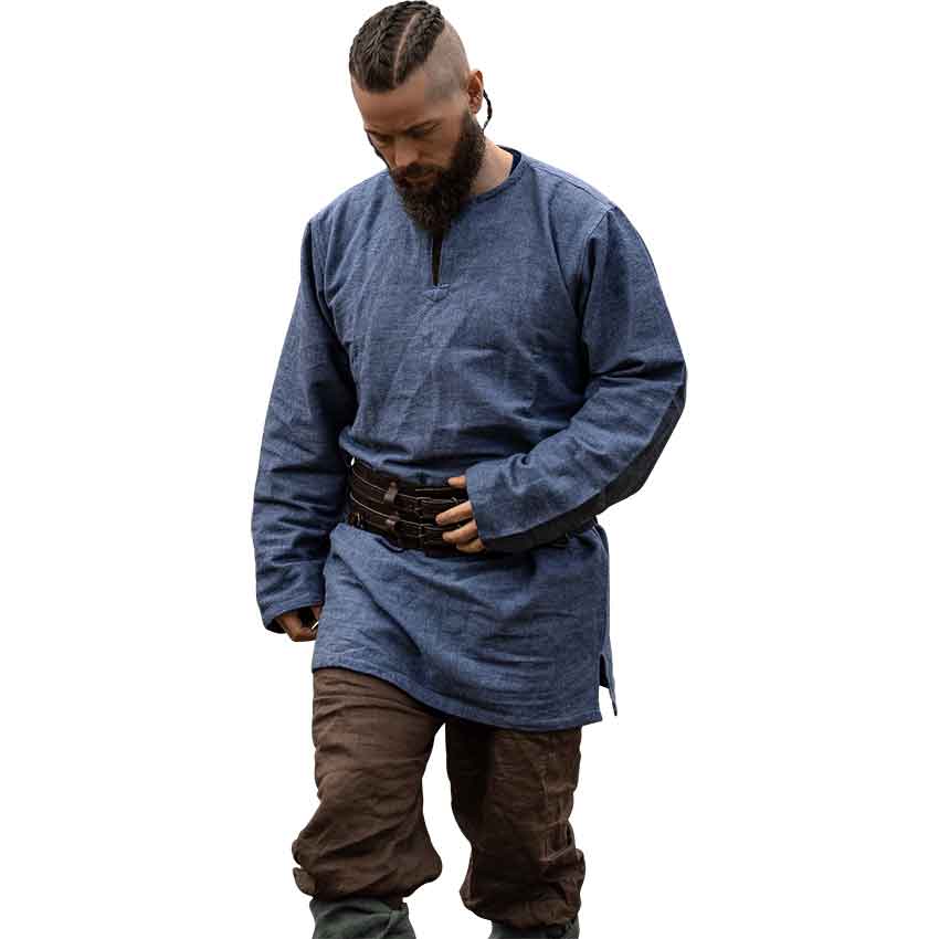 Inspired by the charm of Viking attire, this tunic captures the essence of a bygone age. This Norse tunic is made from pure cotton. Its blue-grey hue complements a wide variety of Viking and medieval outfits.