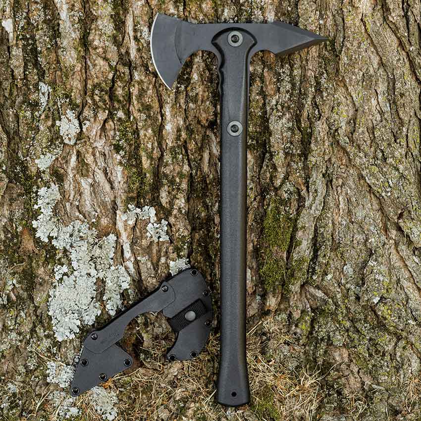 Ready to elevate your toolkit? Meet the black Trench Hawk by Cold Steel, your ultimate survival tool. Crafted for the arsenal of modern warriors, this axe offers various tactical options for your kit.
