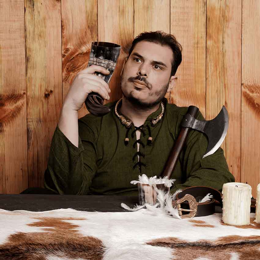 Perfect for reenactments, cosplays, and Renaissance faires, this horn adds an authentic touch to your Viking ensemble. But its use extends beyond that. Imagine drinking mead at your next dinner party in this horn or sipping your morning cold brew with a historical twist. The possibilities are endless.