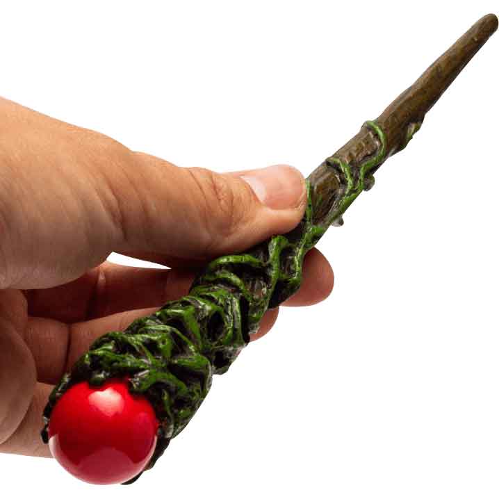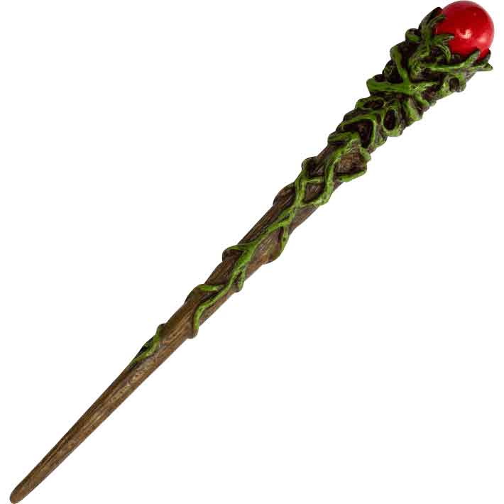 Add the great power of the Greenman to your magic spells and charms by casting them through the Vine Greenman Magic Wand. Made from cold cast resin, this hand-painted wand has a detailed design. The brown wand features a handle with a vine-like texture covering it. The vines form a face. As the vines continue towards the tip, they reveal more of the wood grain-like finish. On the other end, the wand has a red orb finishing the handle. This wand makes a great home decor piece or collectible. Give it as a gift to a fan of fantasy or the Greenman.