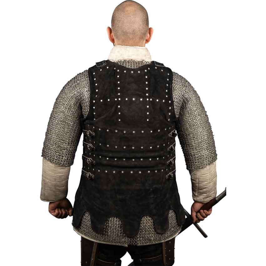 Beyond its formidable protective qualities, the Visby Brigandine is a statement of style. The black leather exterior, highlighted by the unique pattern formed by the visible rivets, creates an aesthetic of understated elegance. This armor does not merely serve as protection; it elevates the wearer, making a bold statement about the fusion of form and function.