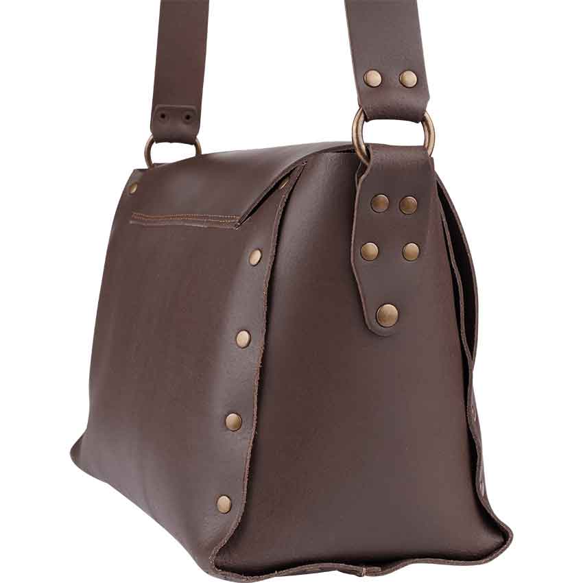 Made from genuine leather, the Wandering Wizard Shoulder Bag exudes a sense of timeless elegance and durability. The rich brown hue adds a touch of sophistication, while the riveted, handcrafted construction ensures its longevity, even during the most challenging quests.