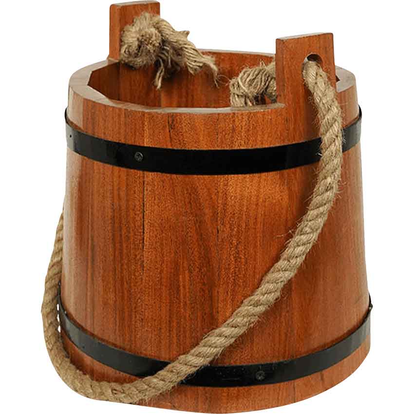 Buckets like these can work for most eras. The wood on the inside of the bucket has a heavy coat of varnish so you don’t have to keep water in it all the time to keep it from leaking.