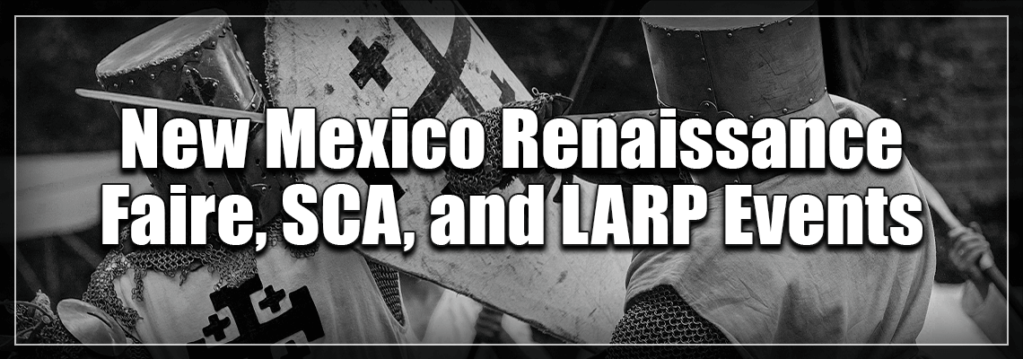 Here at Medieval Collectibles, we have put together a list of all sorts of medieval and Renaissance-themed events. We list the events by event type so you can easily find the Renaissance faire, SCA, or LARP event that you are looking for in New Mexico. In addition, we list upcoming events and recurring yearly events. Check back regularly for future events! We will keep this page updated regularly as events pass and more info for other events becomes available.